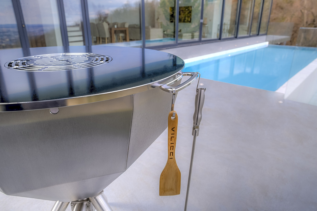 The double wall construction of the grill ensures that the outer walls are much cooler than the walls of the fire chamber. This makes out grills safer and easier to stand near.